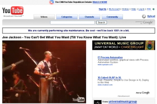 ついさきほどの話。youtubeを見ようと思ったらサーバーダウンしてましたね。youtubeというか、ま、Google様ですから、すぐに復旧するとは思ってましたが、自分の知る限りでは5分くらいだったでしょうか。治りました(笑)。